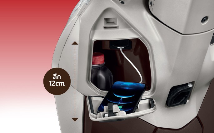 มาพร้อมกล่องเก็บของด้านหน้าพร้อมชาร์จโทรศัพท์ได้